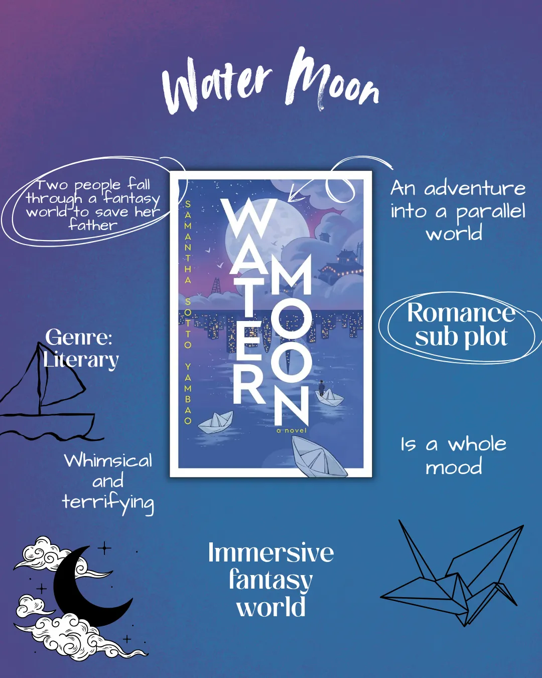 Water Moon had the whimsy and Japanese-inspired fantasy I expected, while also illustrating the oppressive and menacing tenor of a beautiful world where everyone's fate is written at birth and strict adherence is a matter of life and death.