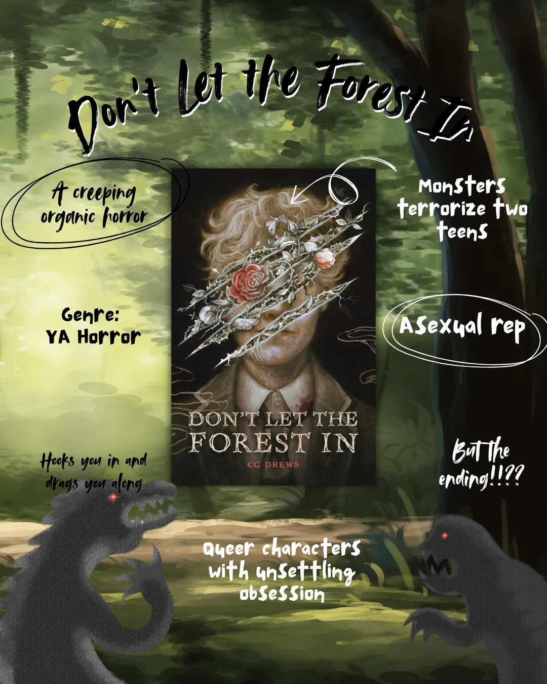 Young adult books aren't my thing. Usually because YA books involve teenagers in a school setting, and I hated being a teenager in a school setting, so I don't enjoy reliving that experience. On paper, I should have hated Don't Let the Forst In by C.G. Drews. It's about teenagers at a fancy live in private school. There are bullies, both students and teachers, which I also don't usually like, but this book had me in a chokehold. I'm not exaggerating when I say I stood stock-still in my kitchen for the last thirty minutes of the audiobook. I kept looking at the time left and internally screaming about how the fuck this book was supposed to wrap up in the next half an hour.